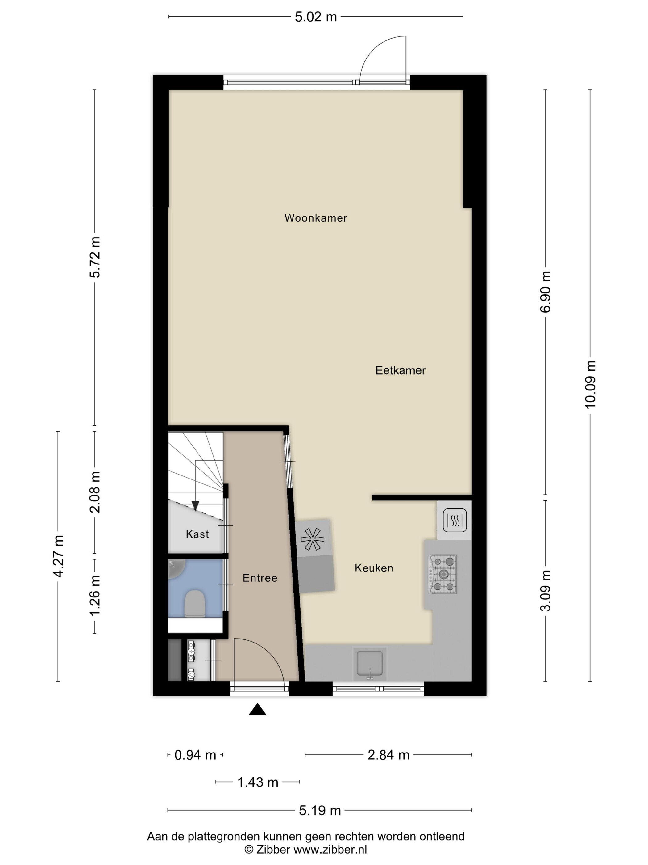 - 50 m² (10 meter diep en 5 meter breed)