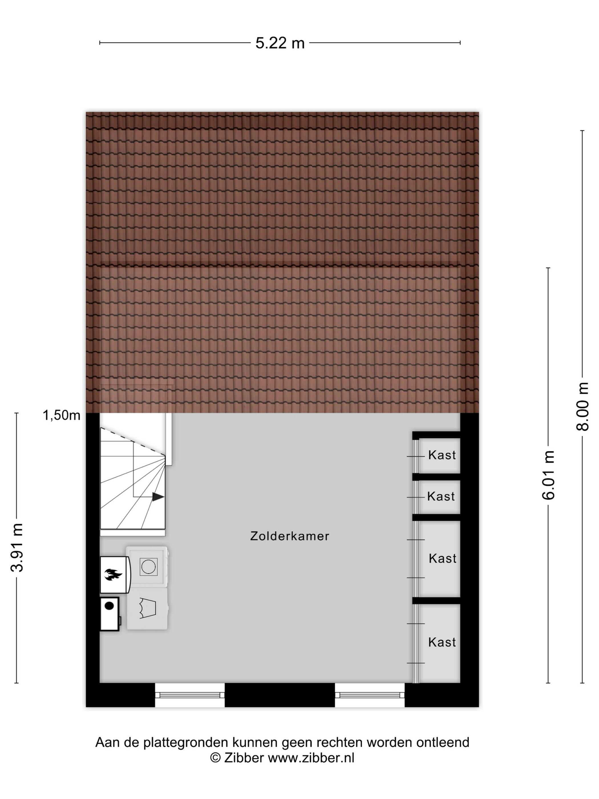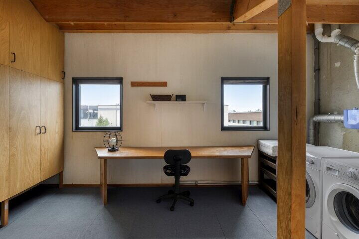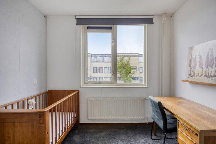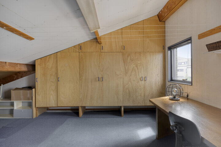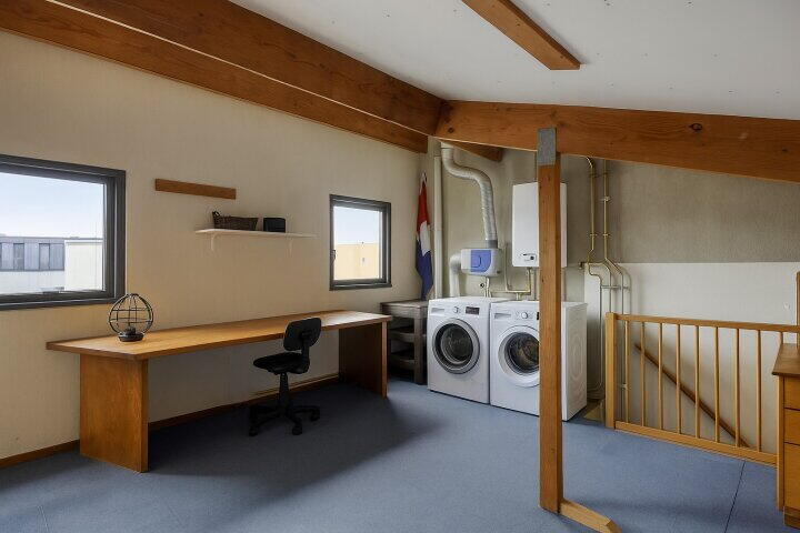 Een vaste trap leidt naar de verrassend ruime zolder, die kan worden ingericht als vierde slaapkamer met praktische inbouwkast. Hier vind je ook de aansluitingen voor wasmachine en droger. De ruimte kan uiteraard ook dienen als werkkamer, hobbyruimte of logeerkamer.