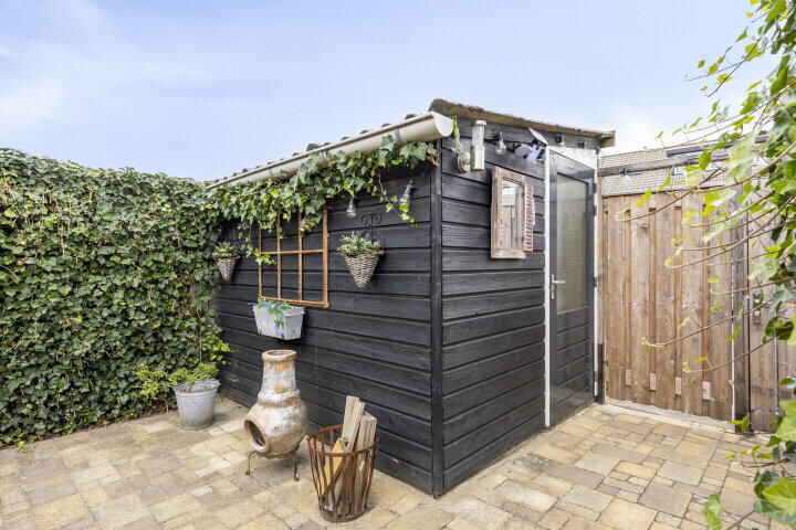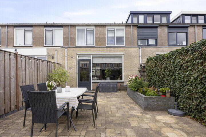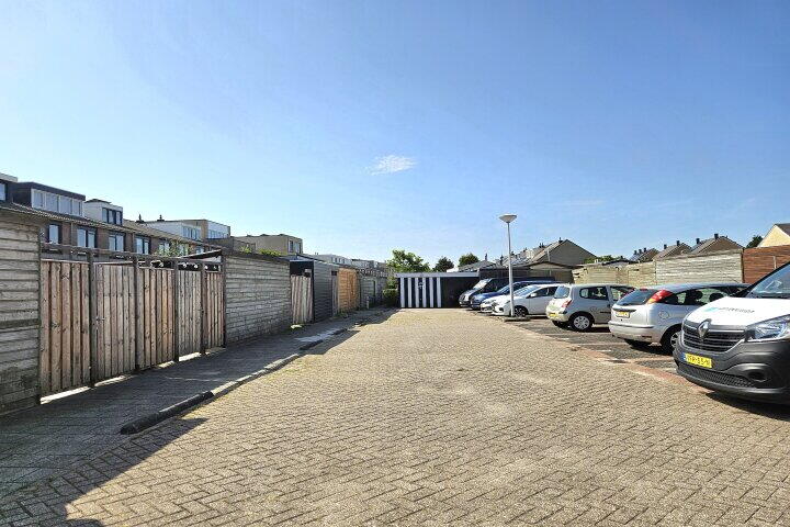 De achtertuin is netjes aangelegd met een combinatie van sierbestrating en groen, waardoor er genoeg plek is voor een groot terras én speelruimte. Achterin de tuin vind je een praktische berging en een achterom. Parkeren kunt u gemakkelijk, zowel voor als achter de woning.